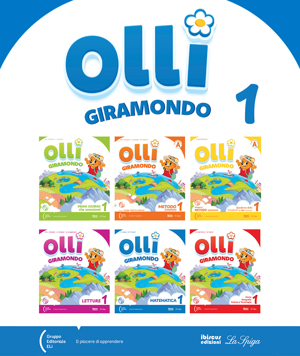 Il progetto riprende e sviluppa una formula già sperimentata con successo: unisce la forza coinvolgente di uno sfondo integratore narrativo e un percorso didattico inclusivo, semplice e naturale. Al centro c’è una storia inedita di Maria Loretta Giraldo: Olli, un’orsetta esploratrice, intraprende un viaggio intorno al mondo. Questa trama non resta “a margine”, ma attraversa trasversalmente i volumi e, in particolare nel primo anno, collega in continuità Quaderno dei primi giorni, Metodo, Letture e Matematica. In classe prima il corso si articola in due percorsi davvero differenziati: Metodo Stampato e Metodo 4 caratteri in simultanea, ciascuno con il proprio Quaderno di scrittura dedicato. L’impianto è pensato per sostenere l’autostima e proporre esercizi ricchi ma accessibili, con attenzione alla fase dell’accoglienza: il Quaderno dei primi giorni è strutturato come albo illustrato e aiuta a lavorare sulle emozioni in modo sereno e positivo. Anche la componente visiva è curata: illustrazioni dinamiche e una grafica essenziale riducono le distrazioni e supportano l’apprendimento in ottica inclusiva.