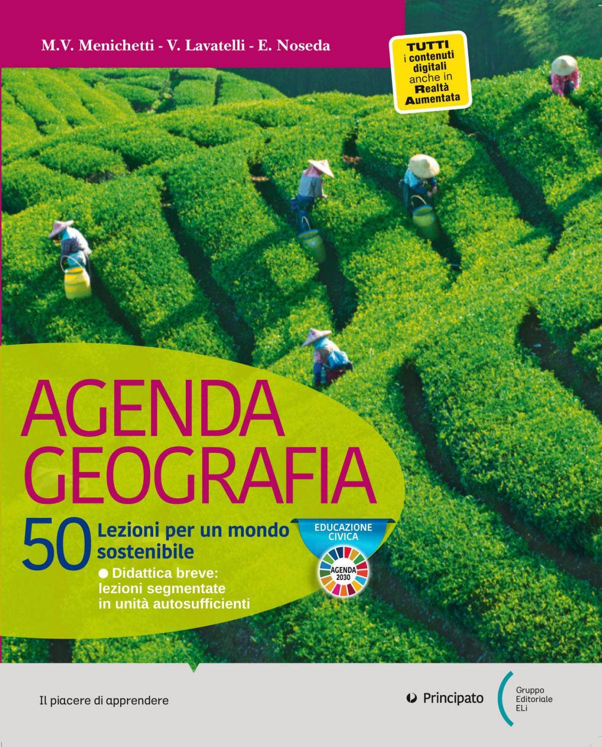Nei primi quattro temi sono affrontati argomenti di geografia generale con grande attenzione ai temi della sostenibilità ambientale legati all’Agenda 2030, segnalati dal colore verde delle pagine e dall’esplicito richiamo all’obiettivo dell’Agenda.