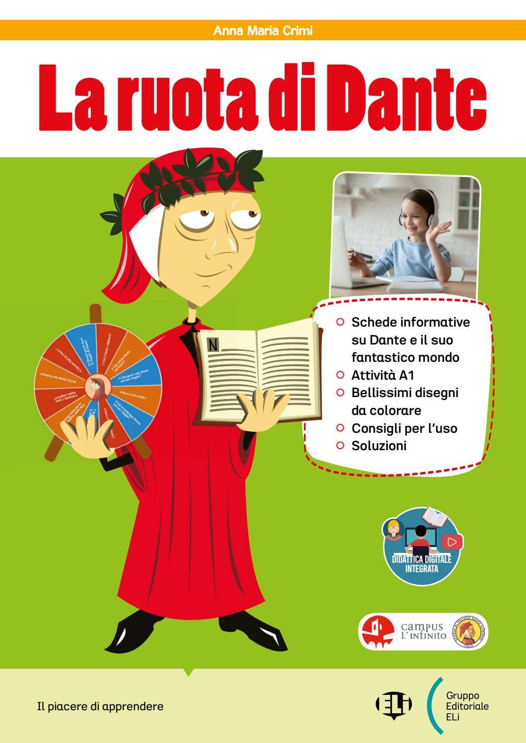 - Una serie di Schede Contenuto e di Schede Attività, pronte all’uso, con informazioni essenziali su Dante e sulla Divina Commedia, attività, giochi, tante illustrazioni da colorare e le soluzioni per il docente.